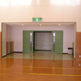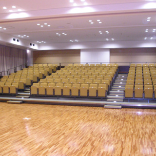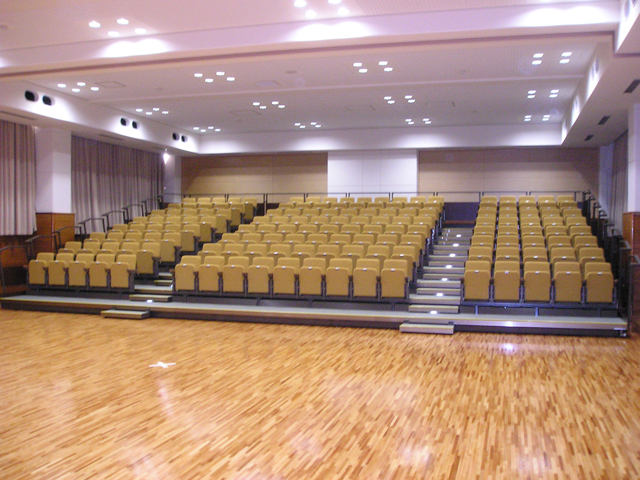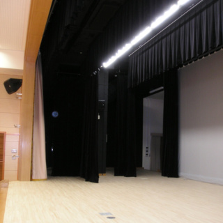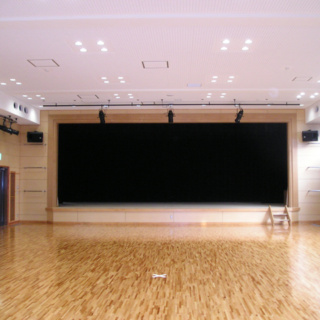 本工事は、「大木町図書・文化等拠点施設整備計画」の1つとして行われました。 基本仕様 内部は舞台観覧時に400席を確保するとともに、一部の座席を電動可動式としました。 常設ステージは幅13m、奥行6m、高さ0.6mとして新設しました。 舞台設備(舞台機構、照明、音響)は、近隣の町ホールで備えられている水準程度で整備することを目的としており、今回は予算の範囲の中で工事を行い、将来的な整備に対応できるように配慮しています。 効率的かつ経済的に空調を行うため、間仕切りカーテンを1箇所増設し、ステージを含め3つのゾーンで空調をコントロールします。 ホールの利用目的に合わせ、光を調節できるよう窓側前面に遮光カーテンを新設し、外からの日差しを遮断できるようにしました。 ステージ裏は既存の研修室と一体的に活用出来るようにしています。 廊下とホームの間に前室を設け、防音ドアを設置してホール内及び外部の音を遮断します。 |