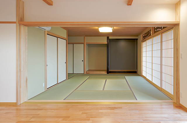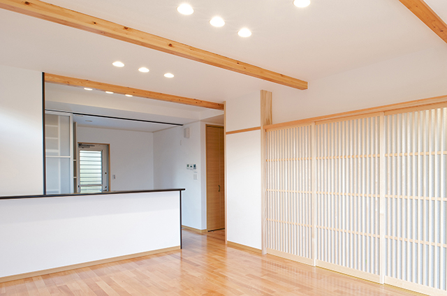 | コンセプト | 一部を共有する「共用二世帯住宅」 生活空間を完全に線引きするのではなく、また、全てを共有するわけでもない。お互いのプライバシーを尊重しながら家族の存在を感じられる心地よい距離感で暮らす住まいとなるように配慮した。 |