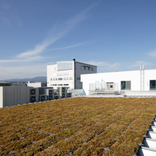 | コンセプト | 日本品質保証機構(JQA)は、総合的な第三者認証機関であり、各種マネジメントシステム企画に基づく審査登録、計量計測器の校正や検定、コンクリートや鉄筋など様々な建設資材の試験等を行う施設である。 機能性を第一とすると共に、省エネ・省資源、そして環境にやさしい建物としました。特に、屋上緑化にすることは、土地の有効利用や景観面のみならずヒートアイランド現象や地球温暖化の防止、建物の断熱効果、雨水の急激な流出防止や酸性雨対策などエコロジーの多方面で発揮されます。 |